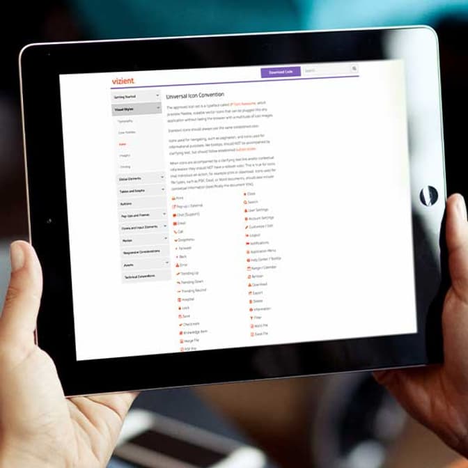 Vizient — the largest member-driven, health care performance improvement company in the country — engaged Integrity to audit, inventory and define the corporate UX/UI guidelines for all future web-based products.